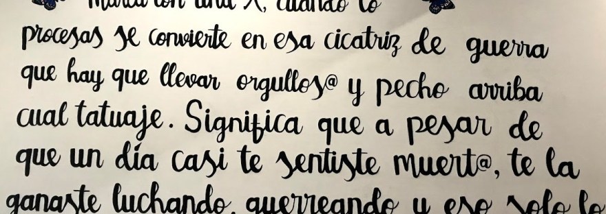Y miras tu pared, ésa que mandaste a decorar con una frase grandiosa de una publicista muy inteligente a quien admiras mucho: “Ese fracaso que hoy sientes que te marca con una X, cuando lo procesas se convierte en esa cicatriz de guerra que hay que llevar orgullos@ y pecho arriba cual tatuaje. Significa que a pesar de que un día casi te sentiste muert@, te la ganaste luchando, guerreando y eso sólo lo hacen los valientes”.